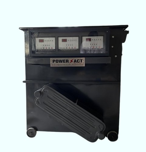 The Oil Cooled Servo Voltage Stabilizer (75 KVA) is a high-performance solution designed to protect your industrial equipment from power fluctuations, ensuring smooth and stable operation. Ideal for environments that demand consistent voltage, this stabilizer efficiently handles voltage variations, providing a steady output and preventing damage to sensitive machinery. With a 75 KVA load capacity and a three-phase configuration, this stabilizer is perfect for large industrial applications, such as factories, manufacturing units, and commercial setups. The oil-cooled design ensures efficient heat dissipation, keeping the stabilizer cool during extended operations, which enhances its durability and longevity.